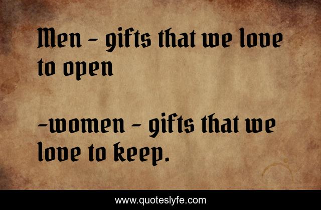 "women - gifts that we love to keep. Quotes." Quoteslyfe.com, 2025. Sat. 06 Dec. 2025. <https://www.quoteslyfe.com/quote/Men-gifts-that-we-love-to-open-58906>.