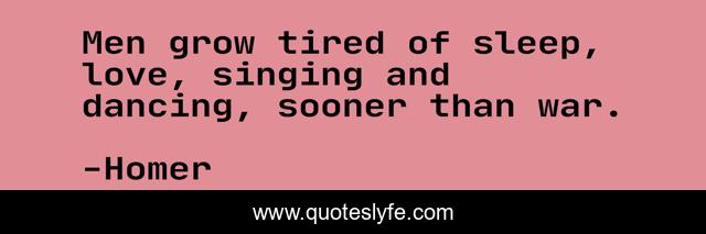 This page presents the quote "Men grow tired of sleep, love, singing and dancing, sooner than war.". Author of this quote is Homer. This quote is about priority, war, mankind, wisdom,.