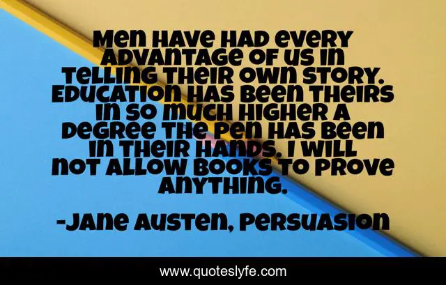 "Jane Austen, Persuasion Quotes." Quoteslyfe.com, 2025. Sat. 06 Dec. 2025. <https://www.quoteslyfe.com/quote/Men-have-had-every-advantage-of-us-43120>.