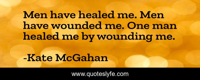 This page presents the quote "Men have healed me. Men have wounded me. One man healed me by wounding me.". Author of this quote is Kate McGahan. This quote is about heal, men, wound,.