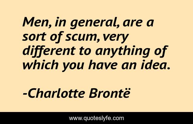 This page presents the quote "Men, in general, are a sort of scum, very different to anything of which you have an idea.". Author of this quote is Charlotte Brontë. .