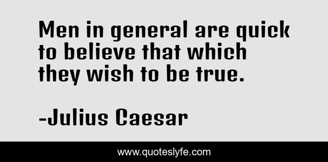 This page presents the quote "Men in general are quick to believe that which they wish to be true.". Author of this quote is Julius Caesar. This quote is about wish, be true, believe,.