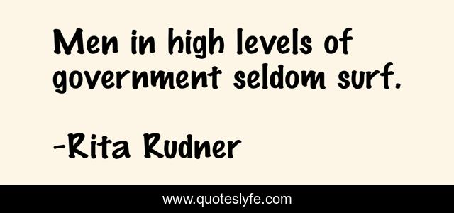 This page presents the quote "Men in high levels of government seldom surf.". Author of this quote is Rita Rudner. .