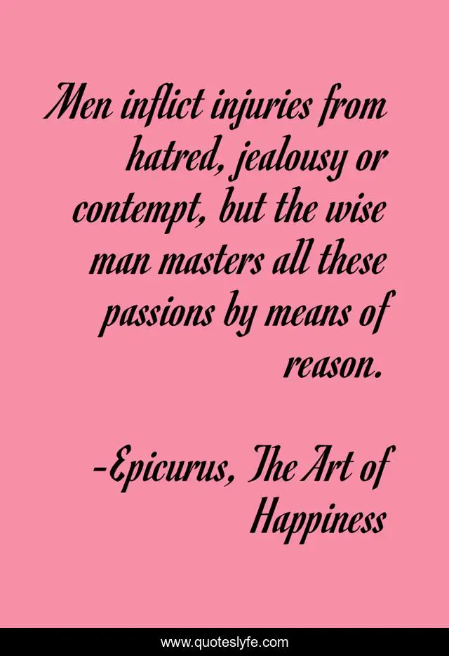 "Epicurus, The Art of Happiness Quotes." Quoteslyfe.com, 2025. Sat. 06 Dec. 2025. <https://www.quoteslyfe.com/quote/Men-inflict-injuries-from-hatred-jealousy-or-90029>.