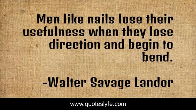 "Walter Savage Landor Quotes." Quoteslyfe.com, 2025. Fri. 05 Dec. 2025. <https://www.quoteslyfe.com/quote/Men-like-nails-lose-their-usefulness-when-266468>.