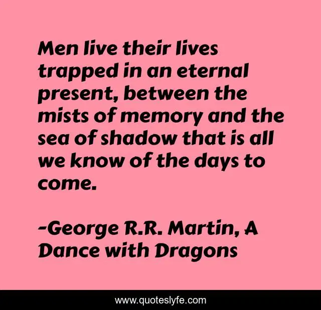 This page presents the quote "Men live their lives trapped in an eternal present, between the mists of memory and the sea of shadow that is all we know of the days to come.". Author of this quote is George R.R. Martin, A Dance with Dragons. .