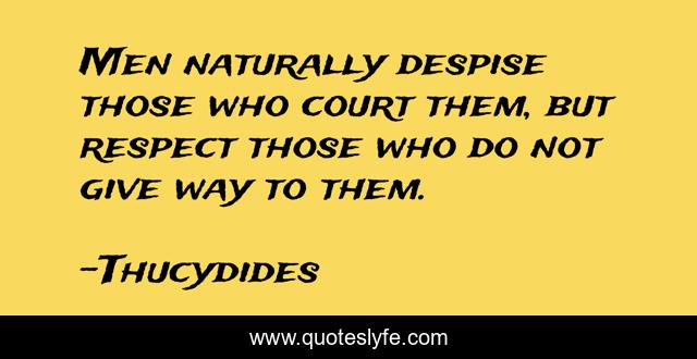 This page presents the quote "Men naturally despise those who court them, but respect those who do not give way to them.". Author of this quote is Thucydides. This quote is about men, way, give,.
