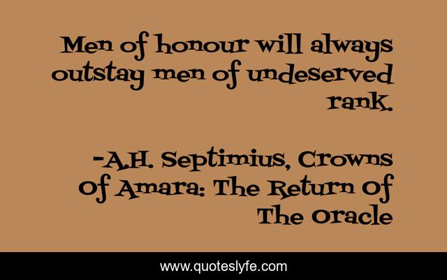 "A.H. Septimius, Crowns Of Amara: The Return Of The Oracle Quotes." Quoteslyfe.com, 2025. Sat. 06 Dec. 2025. <https://www.quoteslyfe.com/quote/Men-of-honour-will-always-outstay-men-13537>.