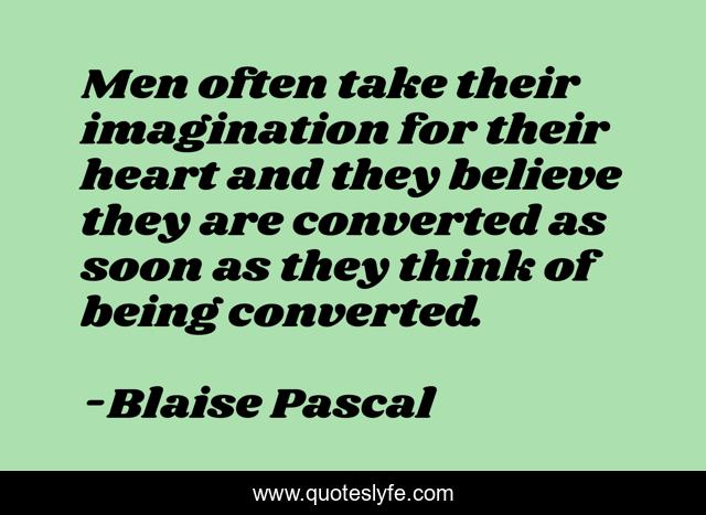 This page presents the quote "Men often take their imagination for their heart and they believe they are converted as soon as they think of being converted.". Author of this quote is Blaise Pascal. This quote is about heart, believe, men,.