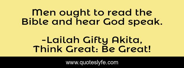 "Lailah Gifty Akita, Think Great: Be Great! Quotes." Quoteslyfe.com, 2025. Fri. 05 Dec. 2025. <https://www.quoteslyfe.com/quote/Men-ought-to-read-the-Bible-and-85652>.