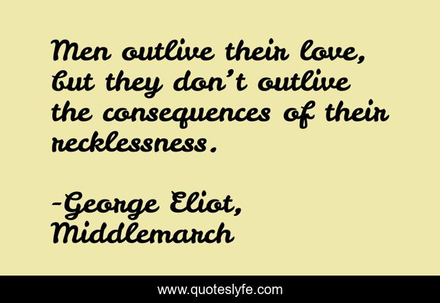 This page presents the quote "Men outlive their love, but they don’t outlive the consequences of their recklessness.". Author of this quote is George Eliot, Middlemarch. This quote is about emotion, infatuation,.