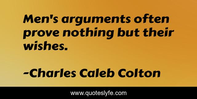 This page presents the quote "Men's arguments often prove nothing but their wishes.". Author of this quote is Charles Caleb Colton. This quote is about nothing, wishes, prove,.