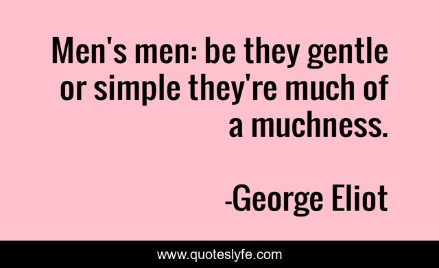This page presents the quote "Men's men: be they gentle or simple they're much of a muchness.". Author of this quote is George Eliot. .