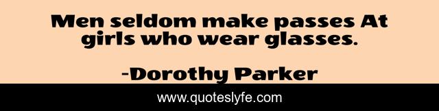 This page presents the quote "Men seldom make passes At girls who wear glasses.". Author of this quote is Dorothy Parker. .