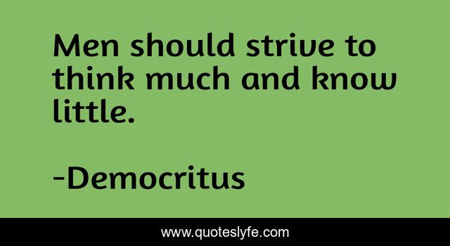 This page presents the quote "Men should strive to think much and know little.". Author of this quote is Democritus. This quote is about little, think,.