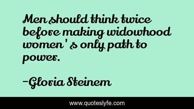This page presents the quote "Men should think twice before making widowhood women's only path to power.". Author of this quote is Gloria Steinem. This quote is about death, widowhood, womens-rights, men, murder, feminism, women,.