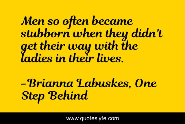 "Brianna Labuskes, One Step Behind Quotes." Quoteslyfe.com, 2025. Sat. 06 Dec. 2025. <https://www.quoteslyfe.com/quote/Men-so-often-became-stubborn-when-they-101748>.