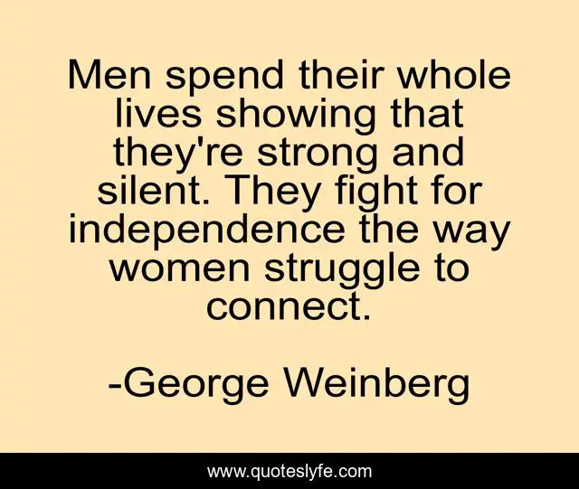 This page presents the quote "Men spend their whole lives showing that they're strong and silent. They fight for independence the way women struggle to connect.". Author of this quote is George Weinberg. This quote is about strong, struggle, women,.