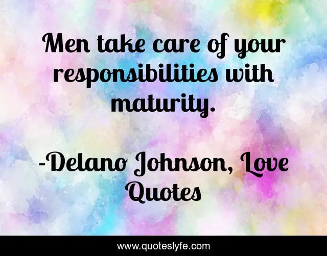 "Delano Johnson, Love Quotes Quotes." Quoteslyfe.com, 2025. Mon. 08 Dec. 2025. <https://www.quoteslyfe.com/quote/Men-take-care-of-your-responsibilities-with-171793>.