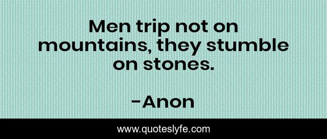 This page presents the quote "Men trip not on mountains, they stumble on stones.". Author of this quote is Anon. This quote is about life, passion, adventure,.