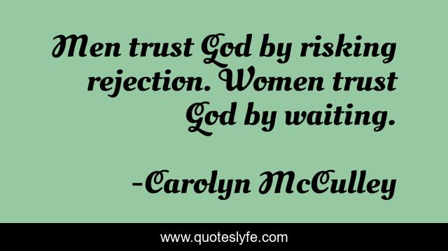 This page presents the quote "Men trust God by risking rejection. Women trust God by waiting.". Author of this quote is Carolyn McCulley. This quote is about god, waiting, trust, men, women,.