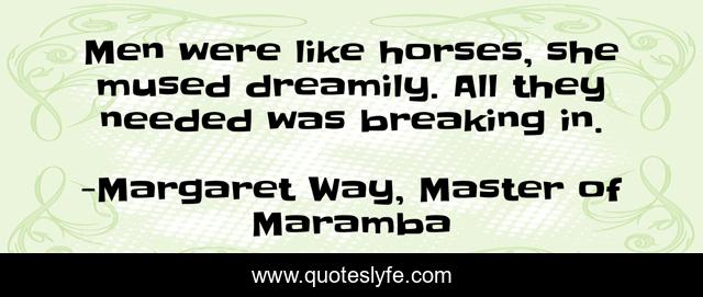 "Margaret Way, Master of Maramba Quotes." Quoteslyfe.com, 2025. Sat. 06 Dec. 2025. <https://www.quoteslyfe.com/quote/Men-were-like-horses-she-mused-dreamily-127746>.