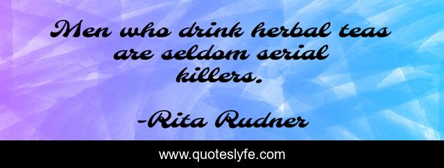 This page presents the quote "Men who drink herbal teas are seldom serial killers.". Author of this quote is Rita Rudner. This quote is about men, women,.