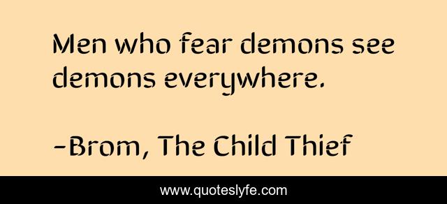 This page presents the quote "Men who fear demons see demons everywhere.". Author of this quote is Brom, The Child Thief. This quote is about fear, see, demons,.