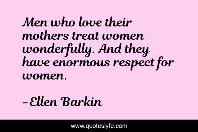 This page presents the quote "Men who love their mothers treat women wonderfully. And they have enormous respect for women.". Author of this quote is Ellen Barkin. This quote is about men, love, affection, women,.