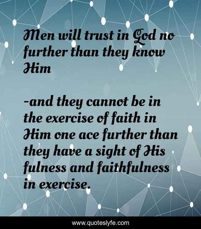 "and they cannot be in the exercise of faith in Him one ace further than they have a sight of His fulness and faithfulness in exercise. Quotes." Quoteslyfe.com, 2025. Fri. 05 Dec. 2025. <https://www.quoteslyfe.com/quote/Men-will-trust-in-God-no-further-11479>.