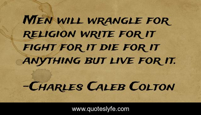 This page presents the quote "Men will wrangle for religion write for it fight for it die for it anything but live for it.". Author of this quote is Charles Caleb Colton. .