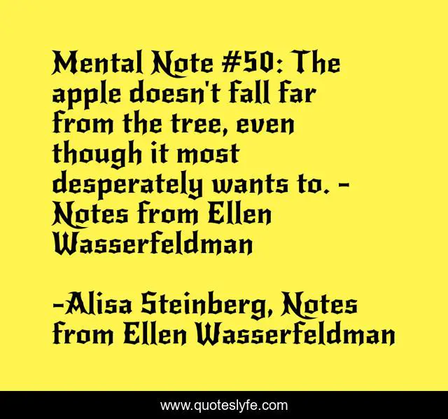 "Alisa Steinberg, Notes from Ellen Wasserfeldman Quotes." Quoteslyfe.com, 2025. Fri. 05 Dec. 2025. <https://www.quoteslyfe.com/quote/Mental-Note-50-The-apple-doesn-t-258462>.