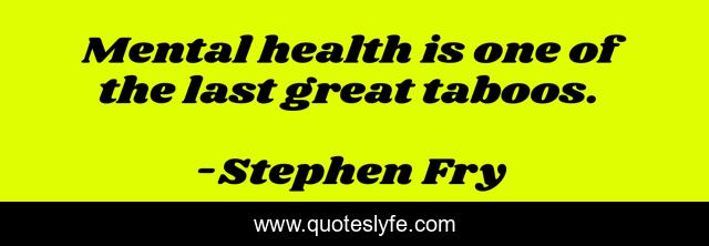 This page presents the quote "Mental health is one of the last great taboos.". Author of this quote is Stephen Fry. This quote is about taboo, mental-health,.