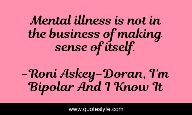 This page presents the quote "Mental illness is not in the business of making sense of itself.". Author of this quote is Roni Askey-Doran, I'm Bipolar And I Know It. This quote is about mood-disorders, depression, bipolar, moods, sense, mental-illness,.
