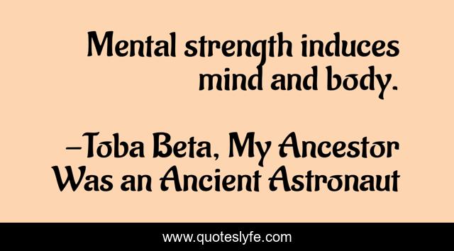 "Toba Beta, My Ancestor Was an Ancient Astronaut Quotes." Quoteslyfe.com, 2025. Sat. 06 Dec. 2025. <https://www.quoteslyfe.com/quote/Mental-strength-induces-mind-and-body-86809>.