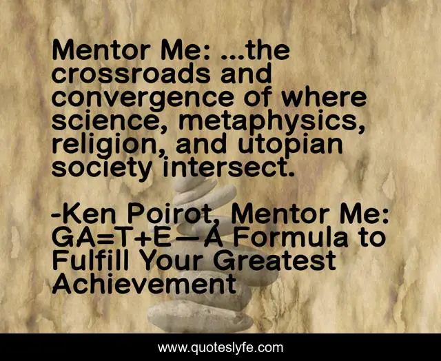 "Ken Poirot, Mentor Me: GA=T+E—A Formula to Fulfill Your Greatest Achievement Quotes." Quoteslyfe.com, 2025. Sun. 07 Dec. 2025. <https://www.quoteslyfe.com/quote/Mentor-Me-the-crossroads-and-convergence-of-102784>.