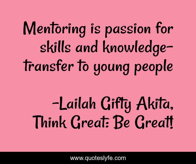 "Lailah Gifty Akita, Think Great: Be Great! Quotes." Quoteslyfe.com, 2025. Fri. 05 Dec. 2025. <https://www.quoteslyfe.com/quote/Mentoring-is-passion-for-skills-and-knowledge-92863>.