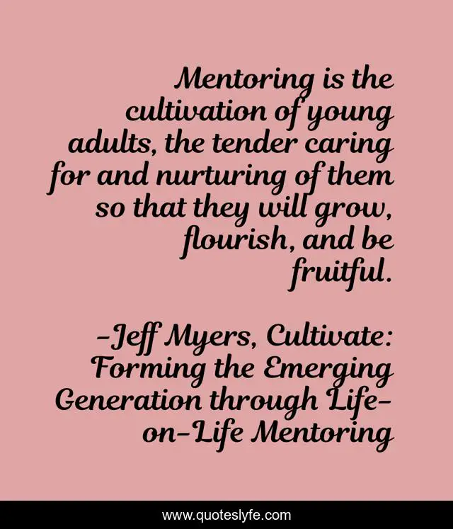 "Jeff Myers, Cultivate: Forming the Emerging Generation through Life-on-Life Mentoring Quotes." Quoteslyfe.com, 2025. Tue. 09 Dec. 2025. <https://www.quoteslyfe.com/quote/Mentoring-is-the-cultivation-of-young-adults-206146>.