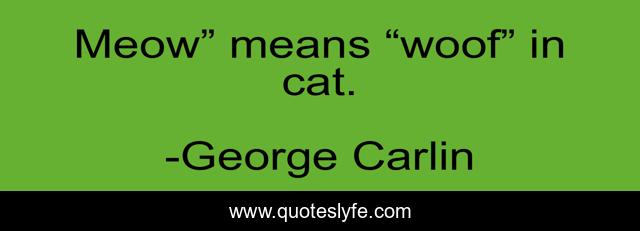 This page presents the quote "Meow” means “woof” in cat.". Author of this quote is George Carlin. This quote is about animals, cats, humor, dogs, language,.