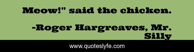 "Roger Hargreaves, Mr. Silly Quotes." Quoteslyfe.com, 2025. Sat. 06 Dec. 2025. <https://www.quoteslyfe.com/quote/Meow-said-the-chicken-207384>.