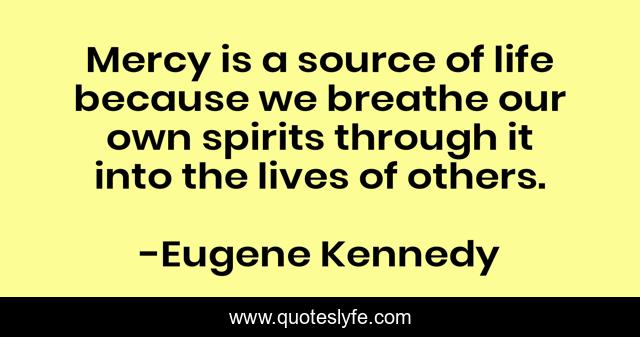 This page presents the quote "Mercy is a source of life because we breathe our own spirits through it into the lives of others.". Author of this quote is Eugene Kennedy. .