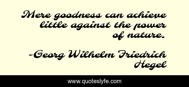 This page presents the quote "Mere goodness can achieve little against the power of nature.". Author of this quote is Georg Wilhelm Friedrich Hegel. This quote is about power, goodness, achieve,.