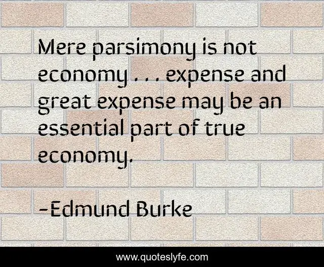 This page presents the quote "Mere parsimony is not economy . . . expense and great expense may be an essential part of true economy.". Author of this quote is Edmund Burke. .