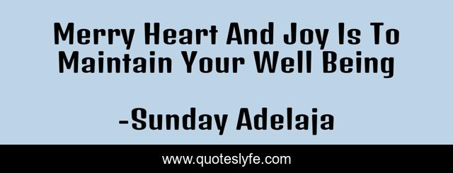 This page presents the quote "Merry Heart And Joy Is To Maintain Your Well Being". Author of this quote is Sunday Adelaja. This quote is about heart, maintain, well-being, merry, joy,.