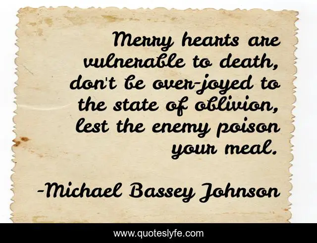 "Michael Bassey Johnson Quotes." Quoteslyfe.com, 2025. Sun. 07 Dec. 2025. <https://www.quoteslyfe.com/quote/Merry-hearts-are-vulnerable-to-death-don-16641>.