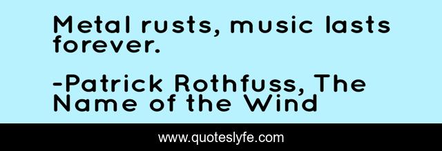 "Patrick Rothfuss, The Name of the Wind Quotes." Quoteslyfe.com, 2025. Sat. 06 Dec. 2025. <https://www.quoteslyfe.com/quote/Metal-rusts-music-lasts-forever-82843>.