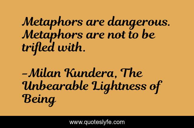 "Milan Kundera, The Unbearable Lightness of Being Quotes." Quoteslyfe.com, 2025. Fri. 05 Dec. 2025. <https://www.quoteslyfe.com/quote/Metaphors-are-dangerous-Metaphors-are-not-to-217019>.