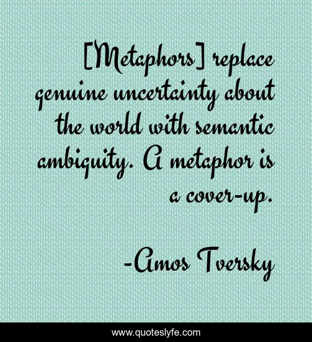 This page presents the quote "[Metaphors] replace genuine uncertainty about the world with semantic ambiguity. A metaphor is a cover-up.". Author of this quote is Amos Tversky. This quote is about literature, metaphor, semantics,.