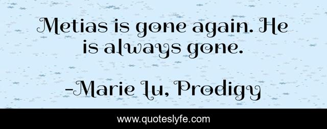 "Marie Lu, Prodigy Quotes." Quoteslyfe.com, 2025. Fri. 05 Dec. 2025. <https://www.quoteslyfe.com/quote/Metias-is-gone-again-He-is-always-226612>.