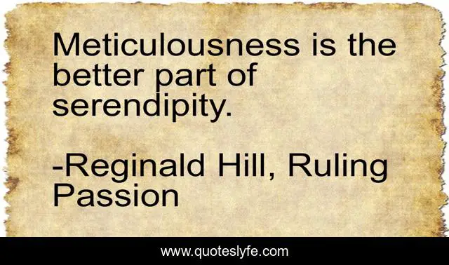 This page presents the quote "Meticulousness is the better part of serendipity.". Author of this quote is Reginald Hill, Ruling Passion. .
